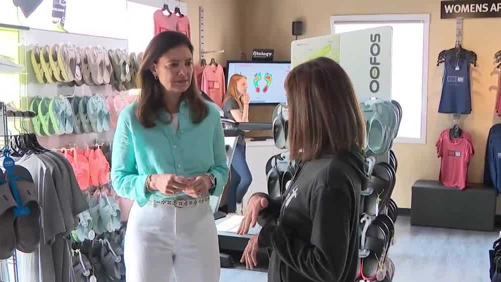 Ayotte, an avid runner, completed a little shopping at Millennium Running in Bedford on Wednesday while delivering a message to consumers from south of the state line.